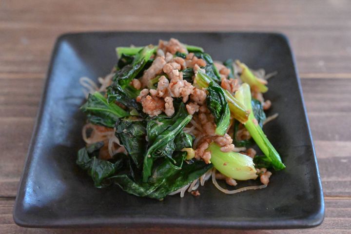 ピーナッツバターが隠し味!小松菜のはるさめ炒め