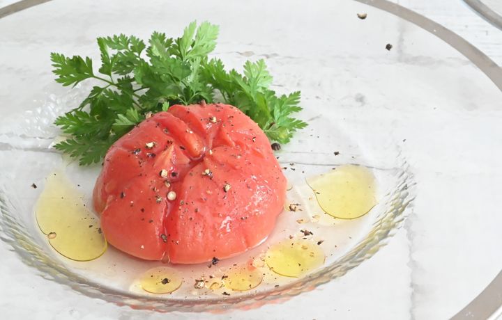 トマトをオーブンでじっくり加熱し、