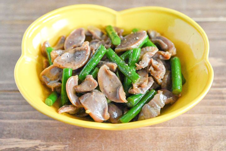 お酒がすすむ!砂肝とにんにくの芽の炒め物
