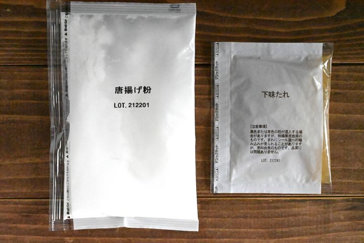 袋の中にはレモン風味の下味たれと専用の唐揚げ粉が入っています。