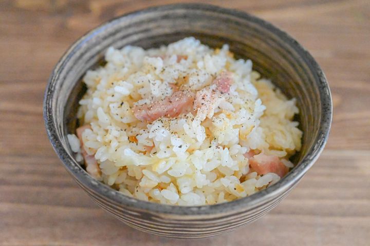 香り豊か♪新玉ねぎとベーコンの炊き込みごはん