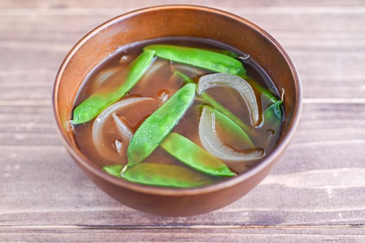 シャキシャキ食感♪きぬさやと新玉ねぎのおみそ汁