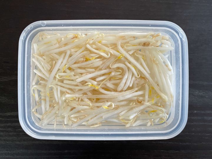 密閉容器にもやしを入れ、