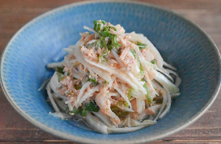 切って混ぜるだけ!新玉ねぎとツナ缶の大葉サラダ