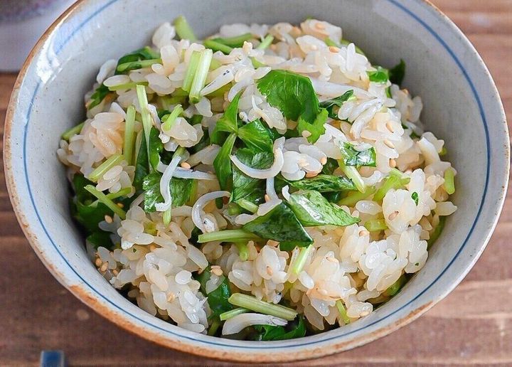 (2)温めた炊いたごはんにすべての材料を合わせ、
