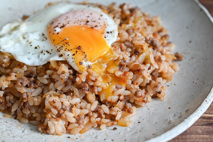 目玉焼きを半熟に仕上げ、ごはんに絡めていただきましょう!