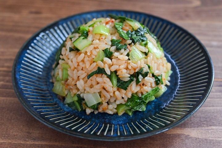 小松菜とごはん、2つの食材で作れるチャーハンです。