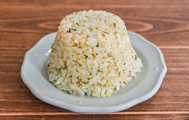温めたごはん1人分とパセリバター15gをフライパンで炒め合わせます。