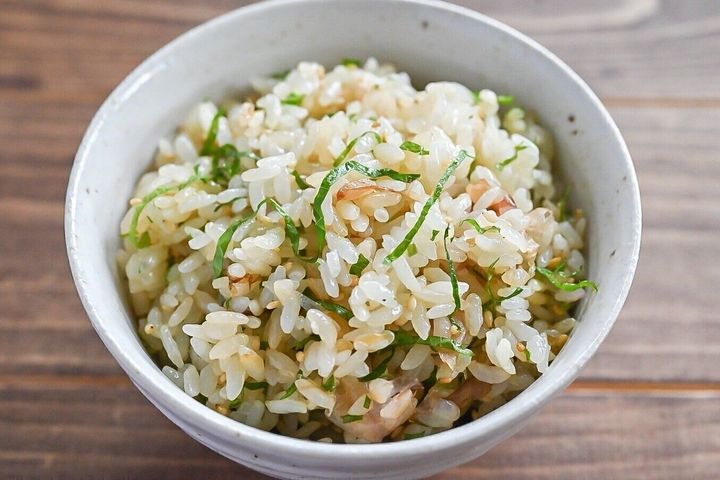 白いごはんに大葉を合わせることでさわやかな味わいが加わり、