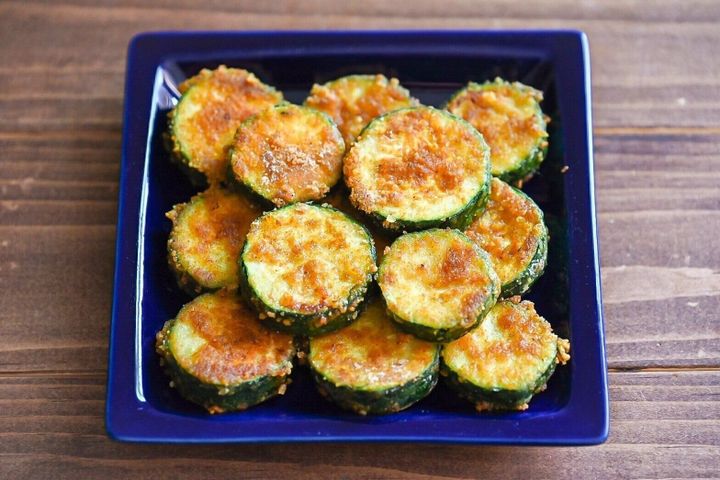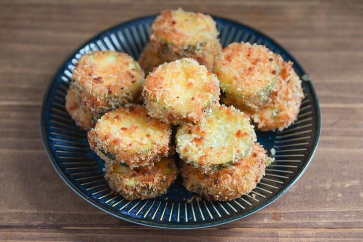 ズッキーニに粉チーズを含めた衣をつけて揚げるレシピです。