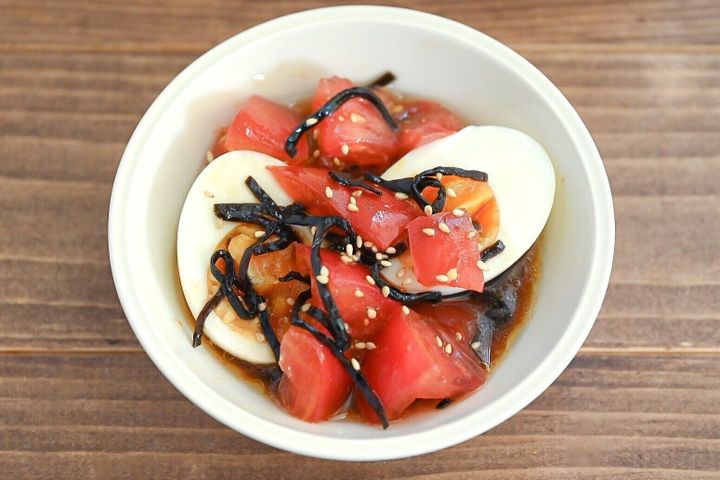 塩昆布の旨味がゆで卵とトマトのおいしさを引き立たせてくれますよ。
