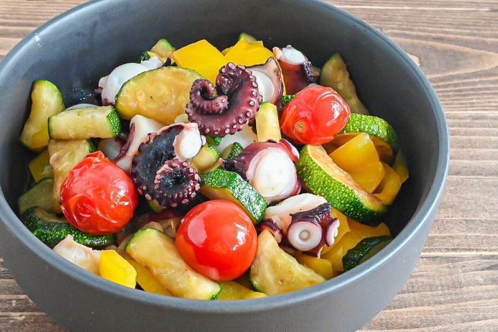 色鮮やか!たこと夏野菜のめんつゆ炒め