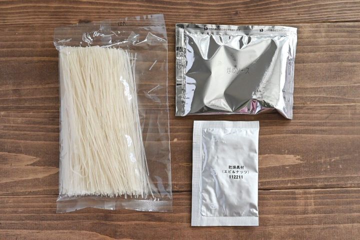 袋の中には炒めソースとビーフン、トッピングが入っています。