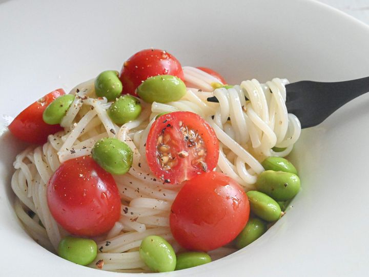そうめんの洋風アレンジ!枝豆とミニトマトそうめん