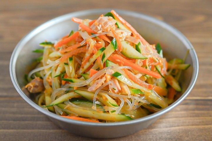 はるさめがゆで上げる2分前ににんじんを入れる。