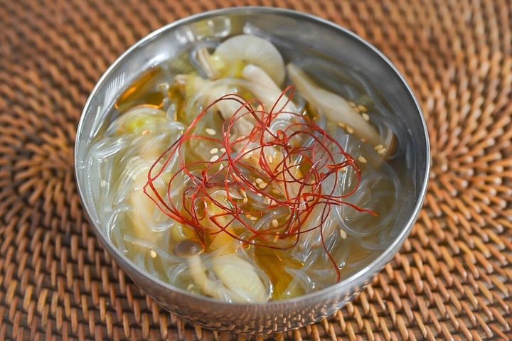 (3)はるさめを加えて5分加熱し、塩で調味する。