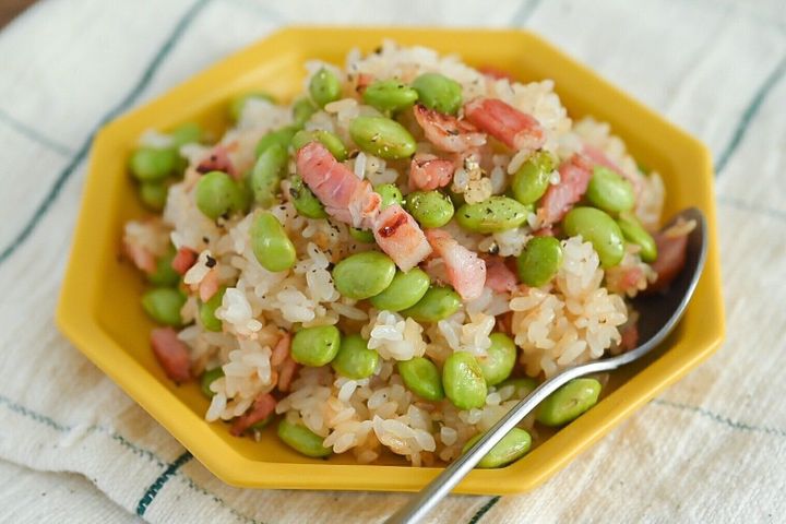 ベーコンの旨味と枝豆の食感が食欲をそそりますよ。