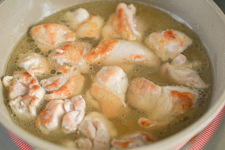「鶏もも肉にしっかり焼き色をつける」