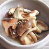 (2)にんにくチューブ、しょうがチューブ、しょうゆ、酒を合わせ、えのきだけによく絡める。