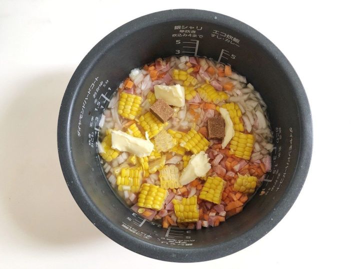 今回はぜーんぶ炊飯器に入れるだけで完成する、