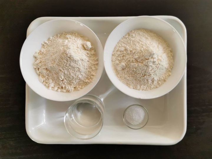 ②強力粉と薄力粉を混ぜ合わせ、