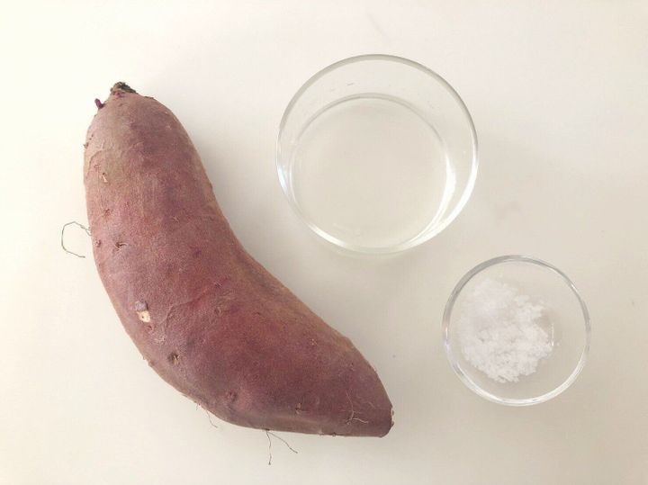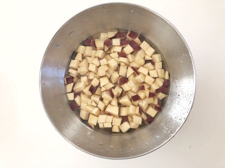 (3)酒と塩を加えて軽くまぜ(1)のさつまいもを入れ