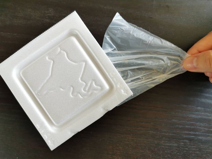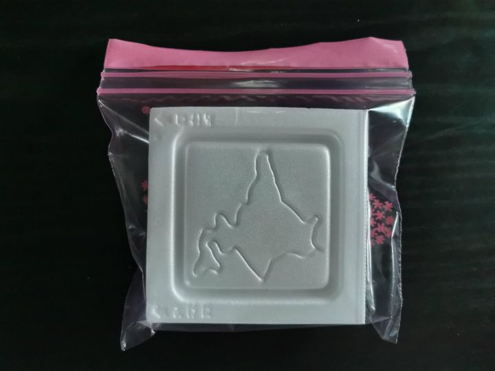 (1)フィルムを少し引っ張り出し、発泡スチロールの蓋を戻す。