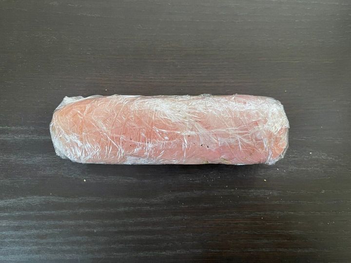(3)円柱の形に整え、ラップでぴっちりと3重に巻き付ける。