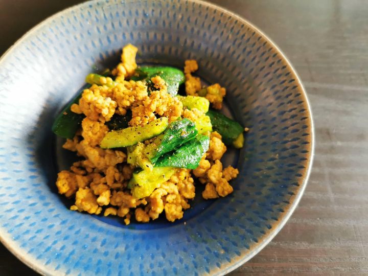 きゅうりと豚ひき肉のカレーチーズ炒めレシピ