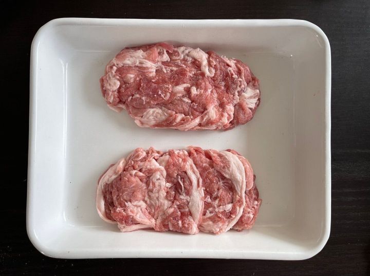 (1)豚肉に片栗粉、塩・胡椒をまぶし、よく混ぜ合わせる。