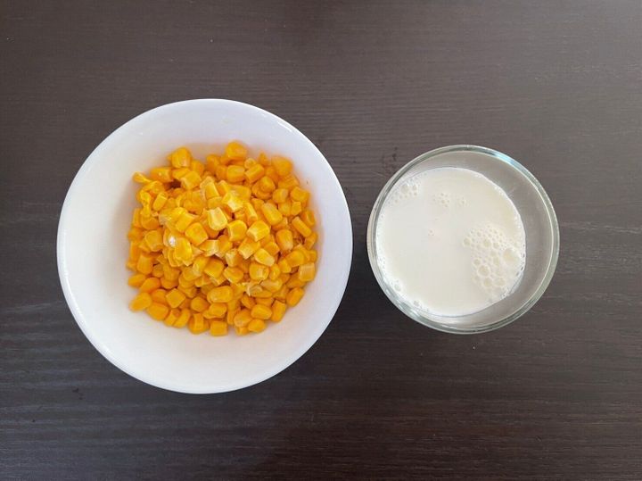 (1)コーン缶は水をきり、牛乳と合わせて