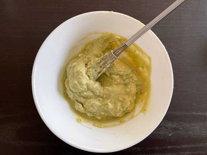 (1)アボカドとお豆腐を潰しながら混ぜ合わせる。