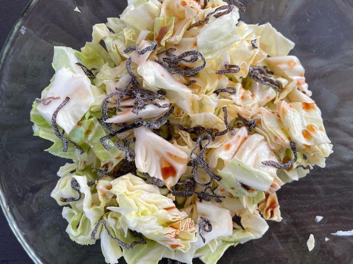 (1)キャベツをざく切りにし、全ての調味料をあわせて完成。