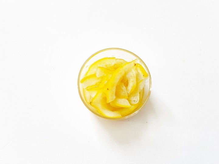 作り方は、「薄切りにしたレモンの皮とお砂糖、水を鍋に入れて煮詰めていく」だけです。