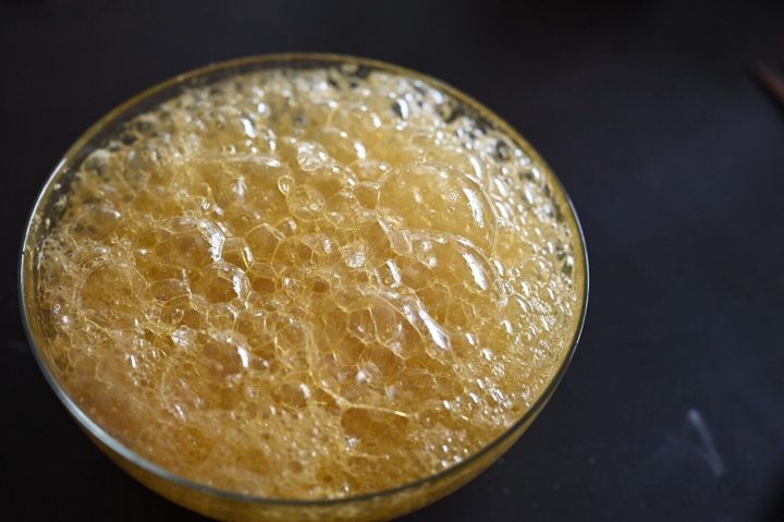 水が加わることで化学反応が起こり、モコモコと泡が出てきます。