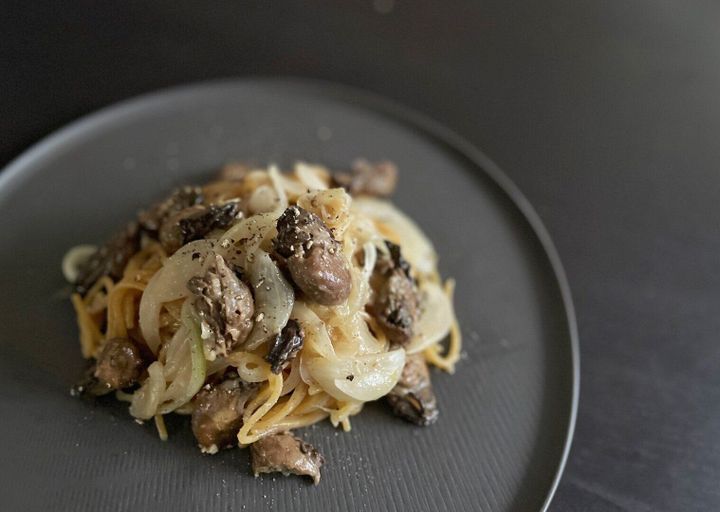 燻製された牡蠣の味がパスタとともに口に広がる、