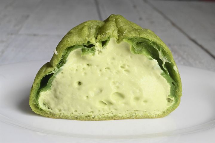 もこっとしたグリーンのシュークリームが出てきます。
