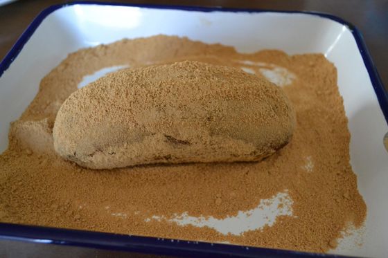 ①のコッペパンをまぶしたら出来上がり。