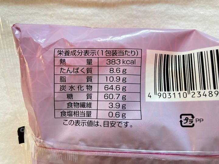 ボリュームのあるデニッシュパンなので、1袋383kcalでした。