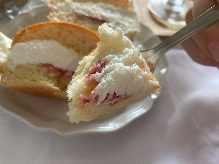 ふわふわ生地のパンとオレンジ風味のたっぷりの生クリームとベリーソースが最高のバランスで、とっても美味しいマリトッツオでした。
