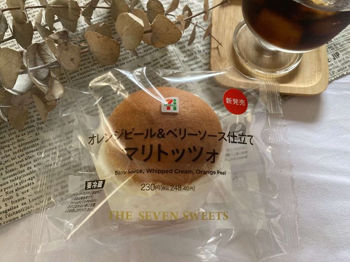 セブンから新発売された、「オレンジピール&ベリーソース仕立て マリトッツオ」をご紹介させて頂きました。