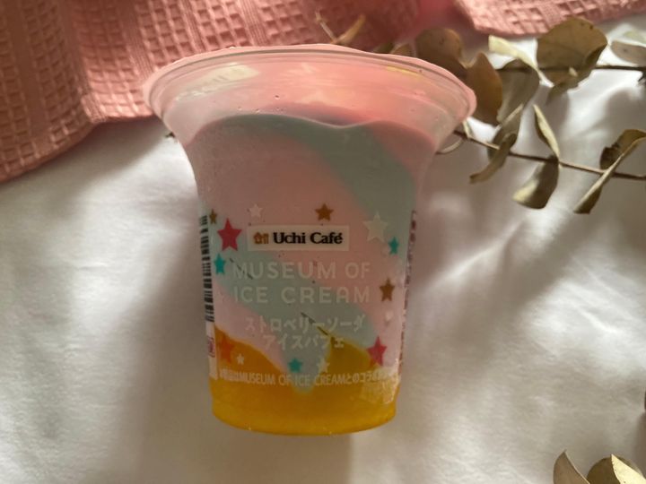 最初にご紹介するのは、ローソンから新発売された「Uchi Cafe MOIC ストロベリーソーダアイスパフェ」です。価格は1個185円(税込)です。