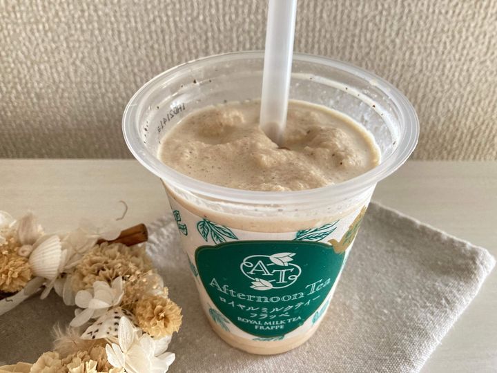 ロイヤルミルクティーフラッペは、紅茶専門店の「Afternoon Tea」監修のもと開発された商品なんです。本格な味わいを再現するために、ミルクティーにピッタリな茶葉が使用されています。