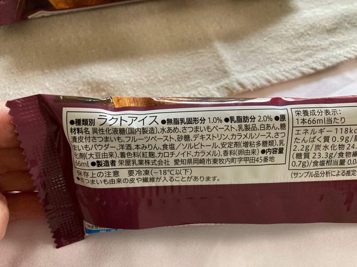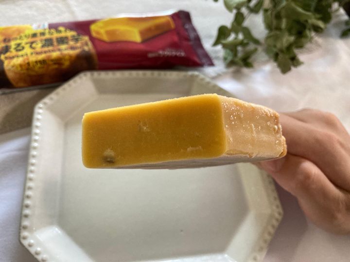 袋から出してみると、サツマイモと同じ色合いのアイスバーが出てきます。