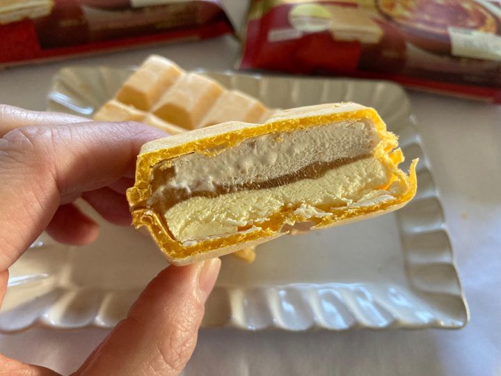 袋から出してみると、一見ふつうのモナカアイスに見えます。