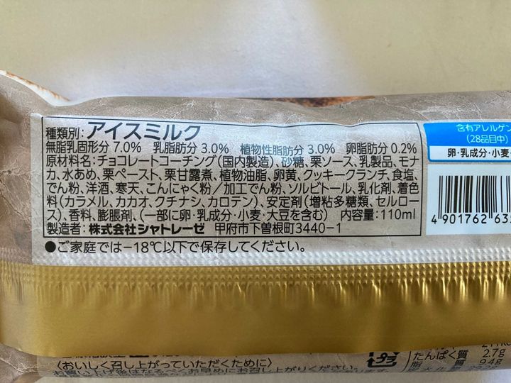 こちらのモナカアイスを袋から出してみると、栗色のモナカアイスが出てきます。