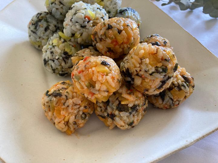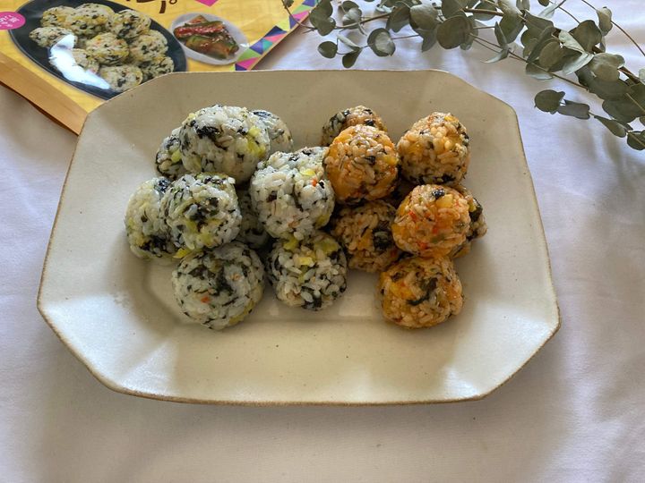 チュモッパとは韓国伝統の家庭料理で、漬物や野菜、韓国のりなどの具材をご飯に混ぜ合わせ、食べやすく一口サイズに丸めたおにぎりです。