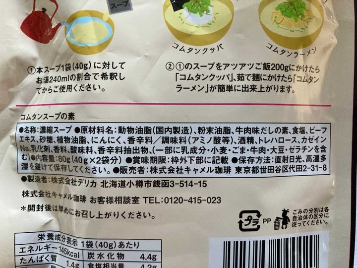 こちらの商品は、1袋に2人前のコムタンスープの素が入っています。