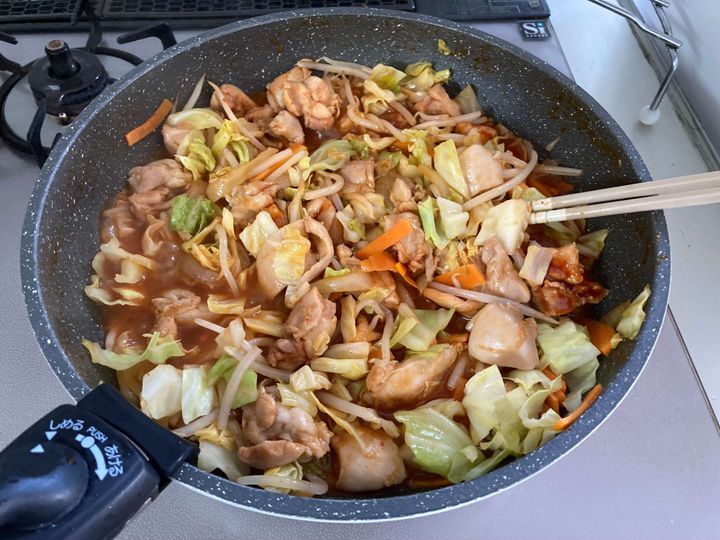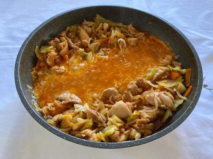 鶏肉や野菜を用意したらフライパンで簡単に「タッカルビ」が作れます。