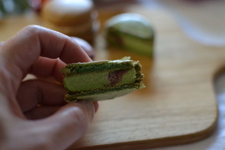 鮮やかなグリーンのパッケージから出してみると、マカロンアイスも可愛いグリーン。